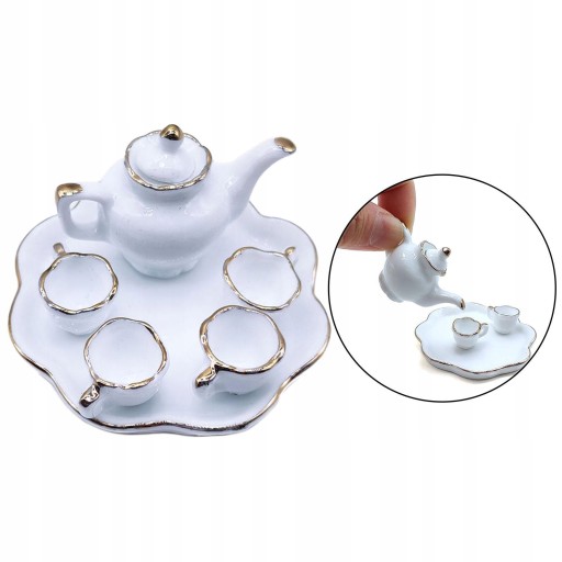 Pasuje do miniaturowego zestawu akcesoriów do mebli dla lalek, w tym 1x talerz, 1x dzbanek do herbaty, 4x filiżanka do herbaty.