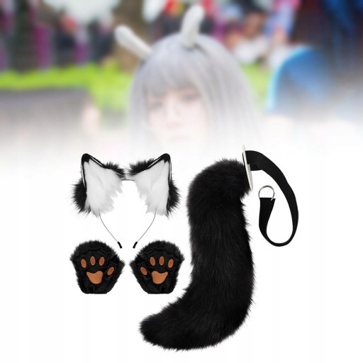 [Zestaw Cosplay] zawiera 1 ogon, 1 opaskę na uszy, 1 parę rękawiczek. Modny i niepowtarzalny, idealny na Halloween cosplay.