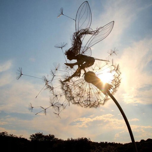Z metalowych drutów powstają czarujące baśniowe rzeźby Odporny na rdzę, trwały i wodoodporny, szeroko stosowany na zewnątrz