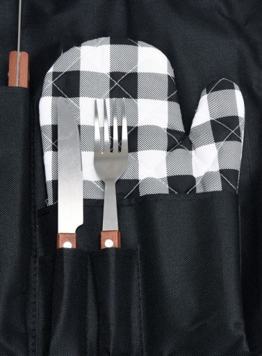 Niezbędny zestaw dla wszystkich miłośników grillowania. W specjalnie zaprojektowanym fartuchu przybory grillowe są zawsze pod ręką, a podczas przechowywania fartuch służy jako pokrowiec.