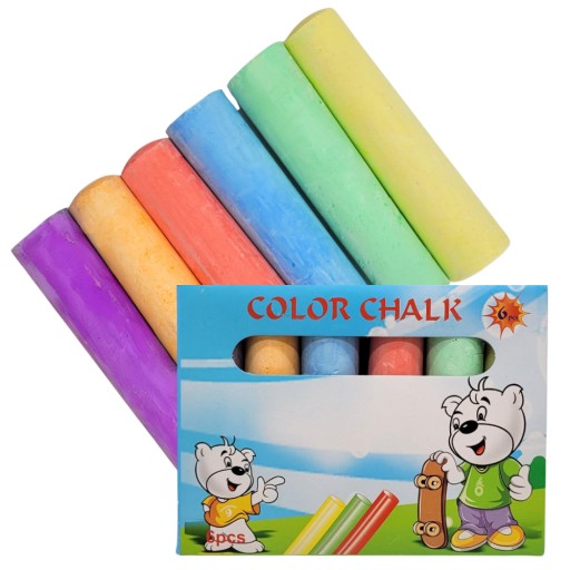 ZESTAW 6 SZTUK KOLOROWEJ KREDY CHODNIKOWEJ. KOLORY KREDY NIEZWYKLE INTENSYWNE.