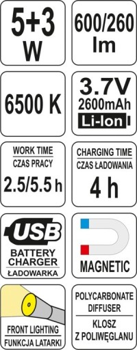 - Czas świecenia [h]: 2,5-5,5