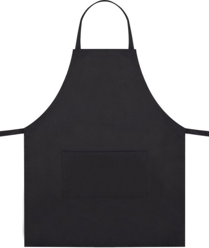Praktyczny, bawełniany fartuch w eleganckiej czerni, chroniący odzież podczas grillowania i pracy w kuchni