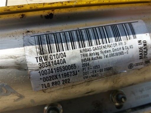 ПОДУШКА ПАССАЖИРСКОГО VW TOUAREG I 7L 7L0880202