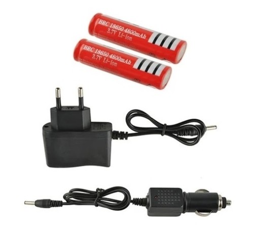 - zasilanie: 2 × akumulator BRC 18650 8800 mAh 3,7 V (w zestawie); ładowarka sieciowa 100-250 V, 50/60 Hz 500 mA; ładowarka samochodowa 12 V