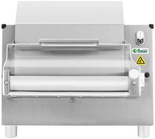 Wałkownica do ciasta marki Fimar sprawdzi się w pizzerii, piekarni czy restauracji do szybkiego rozwałkowywania spodów do pizzy, podpłomyków, spodów do ciast, pity itp. Grubość ciasta ustawiana jest w zakresie 0,3 - 5,5 mm na wałkach o długości 42 cm. Urządzenie rozwałkowuje 210 - 700 g ciasta o średnicy maks. 26 - 40 cm. Moc urządzenie wynosi 370 W. Wałkownica wykonana została z wysokiej jakości stali nierdzewnej, jest wytrzymała, łatwa w czyszczeniu, spełnia wysokie standardy higieniczne. Rolki wykonano z tworzywa sztucznego (POM). Urządzenie wyposażono także w zabezpieczenie, pokrywa górnych wałków musi być zamknięta by maszyna mogła pracować.
