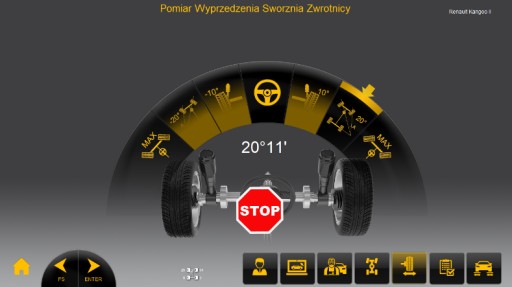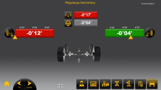 Przejrzyste wyniki pomiaru – po zakończeniu pomiaru pojawiają się kompletne wyniki które operator może ograniczyć podczas regulacji do podglądu tylnej osi lub przedniej osi oraz wyprzedzenia sworznia zwrotnicy.