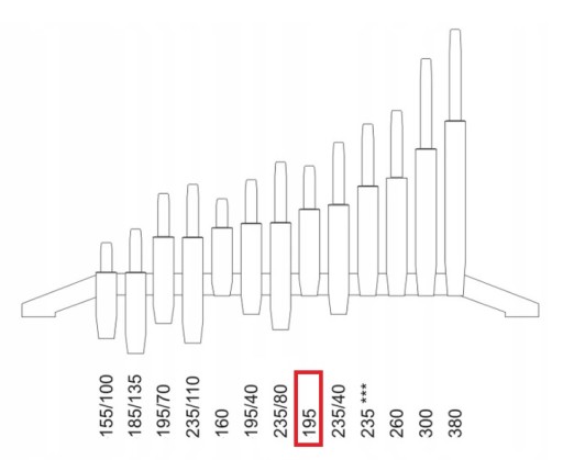 - Wysokość grubej tulei: 195mm