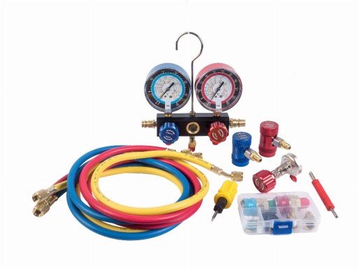 Taki zestaw jest wyposażony w dwa manometry, które dokonują pomiaru parametrów zarówno dla układów niskiego jak i wysokiego ciśnienia. Wskazują wartość ciśnienia jak i temperatury w układzie klimatyzacji dzięki czemu są dwuzakresowe.