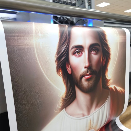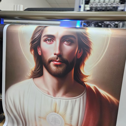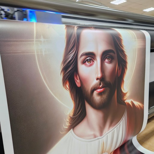 - Estetyczny Design: Wyraziste kolory i szczegółowe odwzorowanie wizerunku Jezusa nadają banerowi profesjonalny i piękny wygląd.