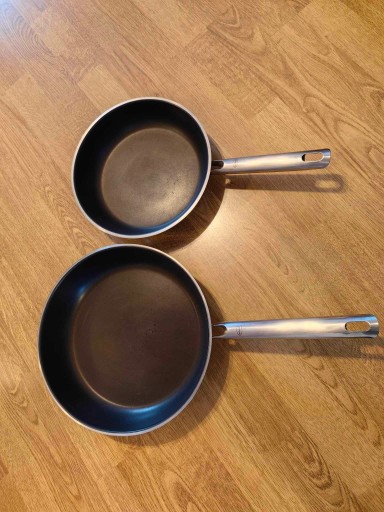 PATELNIE POSIADAJĄ ŚLADY UŻYTKOWANIA NA SPODZIE OD ZEWNĄTRZ I DELIKATNE OBDRAPANIA NA DNIE W ŚRODKU WIDOCZNE NA ZDJĘCIACH