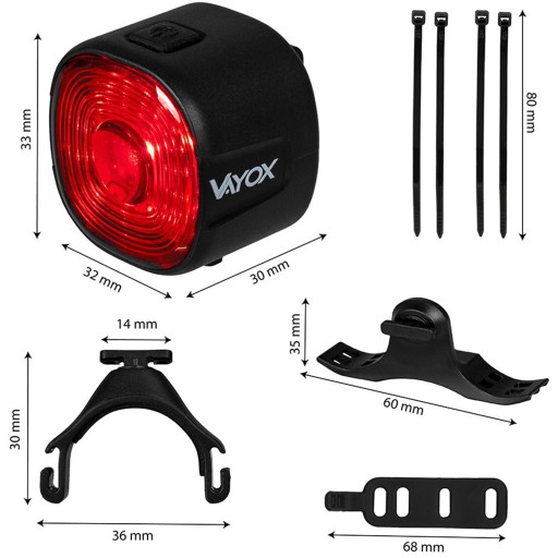 W zestawie znajduje się uchwyt montażowy pod siodełko, który można przymocować za pomocą opaski elastycznej oraz uchwyt montażowy do sztycy. W bardzo szybki i prosty sposób można zdemontować lampkę, przekręcając ją w prawo.