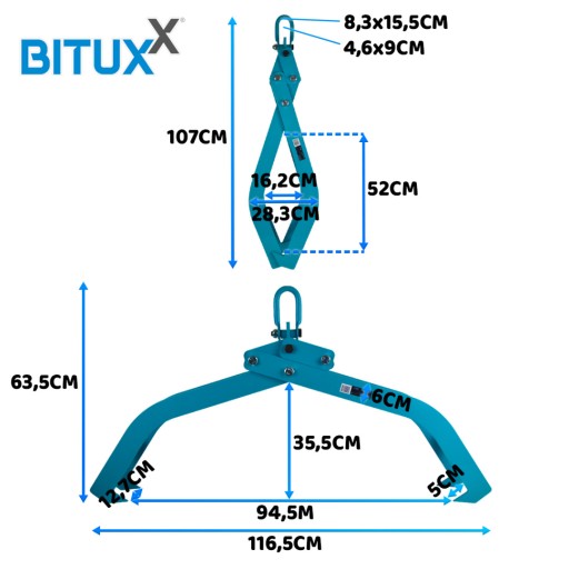 Chwytak może utrzymać ciężar do 1500 kg. Solidna konstrukcja zapewnia pewny chwyt.