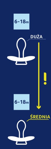 - rozmiary gumki i tarczki smoczka zostały dopasowane do wieku i etapu rozwoju dziecka.