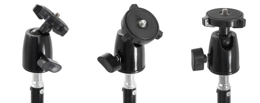 Niewielkich rozmiarów akcesoryjna głowica kulowa do mocowania dodatkowego osprzętu. Głowica posiada gwint montażowy w podstawie (1,4") i śrubę montażową 1/4". Głowica nie posiada demontowalnej szybkozłaczki, wkręca się bezpośrednio w sprzęt. Umożliwia skierowanie w każdym kierunku. Doskonała do montażu na monopodach, statywach oświetleniowych, do dokręcania lamp LED, mikrofonów, monitorów podglądowych. Maksymalne obciążenie głowicy to 1,5 kg.