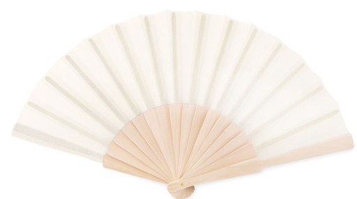 Duży wachlarz drewniany, z tkaniną z poliester.
