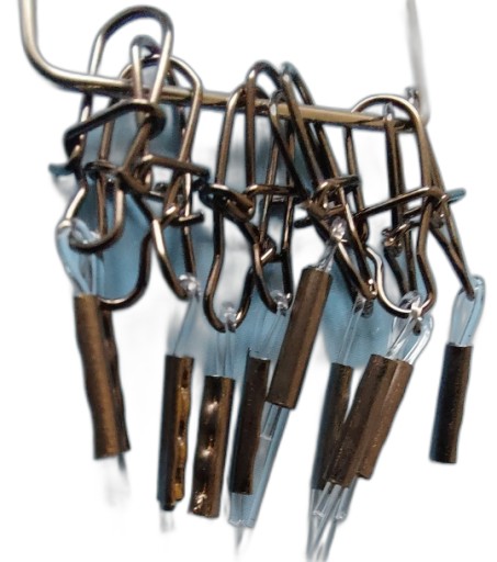 Przypony są sprawdzone i przetestowane. Przypon jest obsadzony praktycznym krętlikiem i mocną agrafką. Przy dużym obciążeniu agrafka nie rozgina się, tylko zaciska, gwarantując dużo większą wytrzymałość niż standardowe agrafki blaszkowe. Kolor: brązowy.