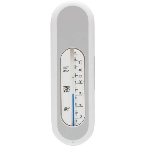 Termometr kąpielowy jest bardzo dokładny. Posiada skalę z odpowiednio zaznaczoną temperaturę jaką powinna mieć woda (37 stopni). Na termometrze znajduje się również skala pokazującą zbyt wysoką i zbyt niską temperaturę wody. Kolor szary pasuje do wanienek z kolekcji oraz stojaka Bebe-Jou w tym samym kolorze.