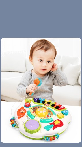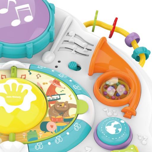 ✔️ Bębenek znajdujący się w centralnej części stolika po naciśnięciu wydaje dźwięki i świeci kolorowym światłem