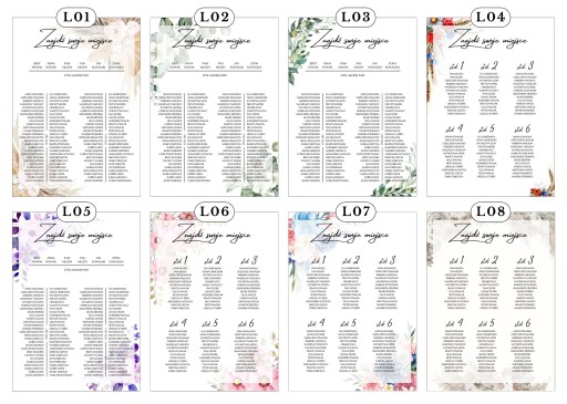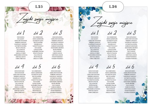 PLAKAT Z LISTĄ GOŚCI I NUMERAMI STOŁÓW
