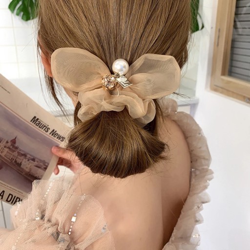 To wykwintna gumka do włosów wykonana z organzy. Piękny kształt kokardki jest usiany perłą pośrodku. Możesz go użyć do związania kucyka lub związania włosów. Ta gumka do włosów jest elastyczna i nie ciągnie włosów. Stanowi bardzo piękną ozdobę głowy.