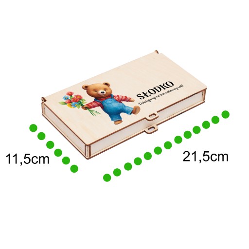 Przedmiotem aukcji jest wyłącznie pudełko drewniane - zestaw nie zawiera słodyczy.