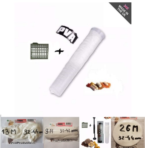 Dostępne uniwersalne siatki PVA o średnicy 32- 44mm odcinki - 7M , 9M , 13.5M , 20M , 27M oraz tuby i tunele z zapasem .