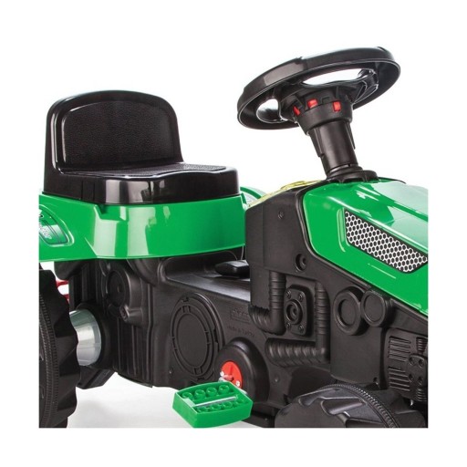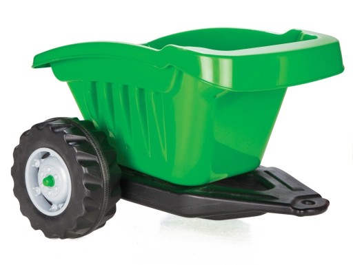 Traktor wyposażony został w dużą przyczepkę, w której mały kierowca zmieści zabawki lub piasek.