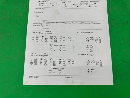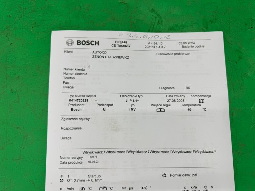 WTRYSKIWACZE SPRAWDZONE, PARAMETRY WIDOCZNE NA ZDJĘCIACH.