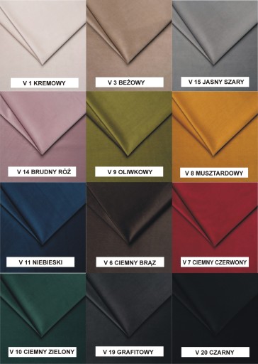 GŁADKA TKANINA WELUROWA, POSIADA ELEGANCKI POŁYSK, DO WYBORU 12 MODNYCH KOLORÓW, BARDZO PRZYJEMNA W DOTYKU