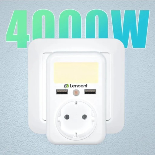 ЛЕНЦЕНТ Зарядное устройство 2x USB A, розетка 4 кВт, с полкой/книжным шкафом, ночное освещение