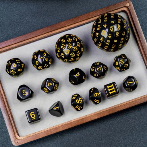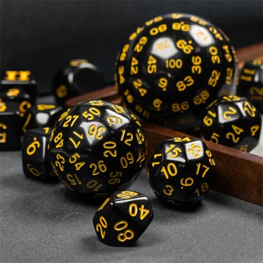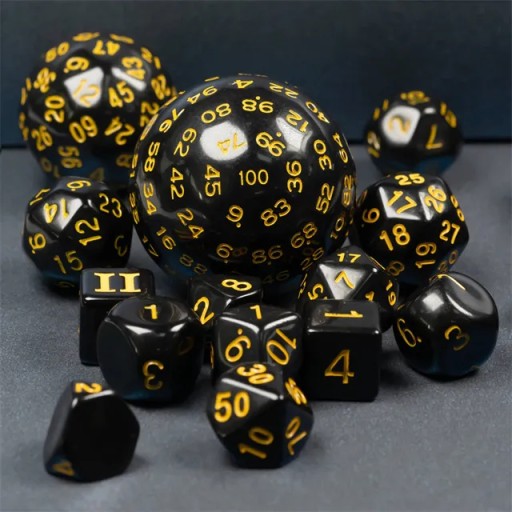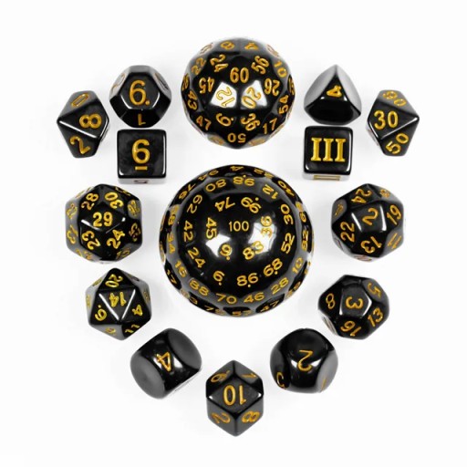 RPG КУБИКИ ЧЕРНЫЕ И ЖЕЛТЫЕ НАБОР ИЗ 15 КУБИКОВ