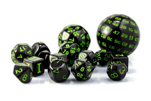 НАБОР ИЗ 15 КУБИКОВ ДЛЯ РПГ, ЧЕРНО-ЗЕЛЕНЫЙ НАБОР ИЗ 15 КУБИКОВ