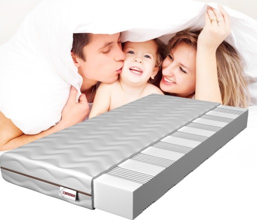 - PROFILOWANA PIANKA POLIURETANOWA - rdzeń materaca wykonany jest z 7-strefowej profilowanej, certyfikowanej pianki poliuretanowej. Dzięki zastosowaniu profilowanych stref komfrortu, materac posiada opdowiednią przewiewność oraz cyrkulację powietrza, co pozytywnie wpływa na zapobieganie nadmiernemu poceniu się podczas snu oraz hamowaniu rozwoju roztoczy i alergenów. Cechuje się wysoką odpornością na odkształcenia, dzięki czemu materac jest w optymalny sposób elastyczny, doskonale dopasowując się do ciała użytkownika, odciążając przy tym kręgosłup i stawy.