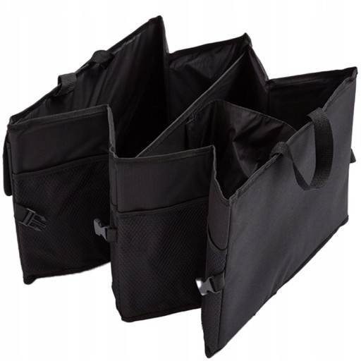 - POJEMNY I PRAKTYCZNY – organizer do samochodu jest duży i bez problemu pomieści różnego rodzaju akcesoria, zakupy, czy też rzeczy na biwak/piknik/wyjazd. Posiada usztywnione ścianki, a gdy jest nieużywany może być szybko złożony do niewielkich wymiarów.