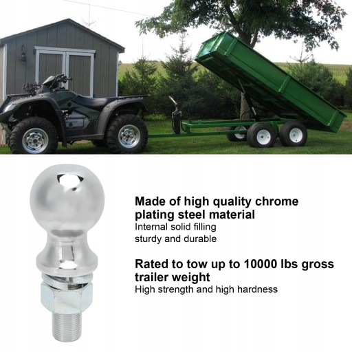 1. Wysokiej jakości materiał: kula zaczepu przyczepy wykonana jest z wysokiej jakości chromowanego materiału stalowego, wewnętrznego stałego wypełnienia, solidnego i trwałego.