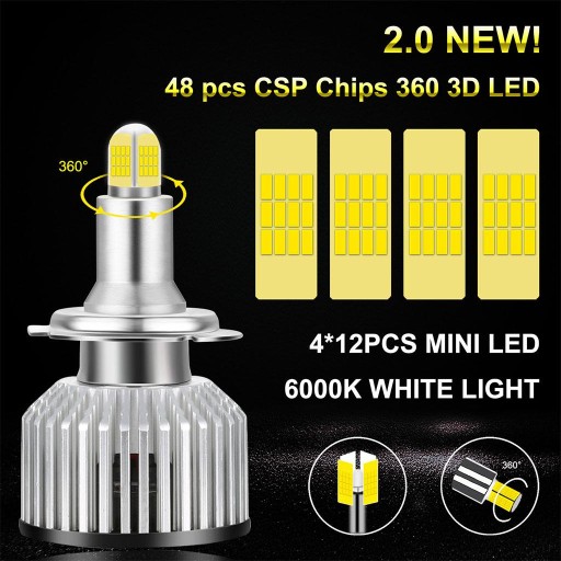 48 sztuk chipów CSP 360 stopni 3D, białe światło 6500 K.