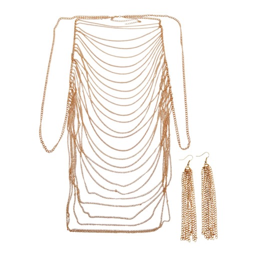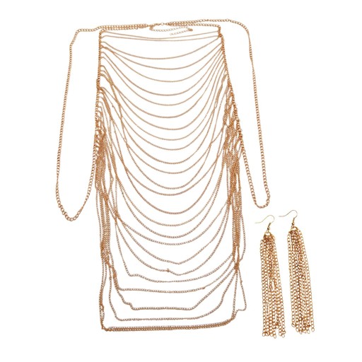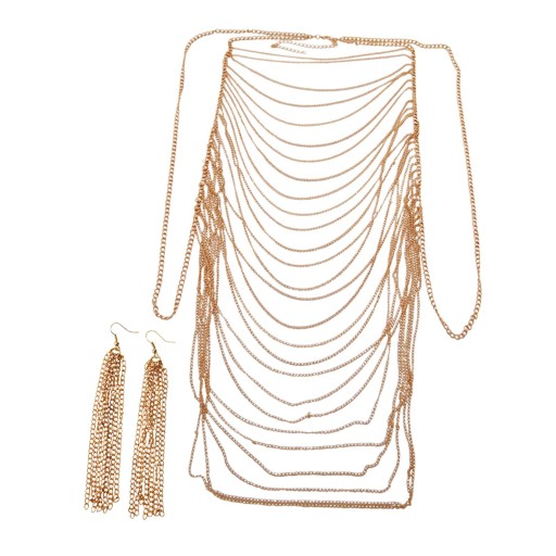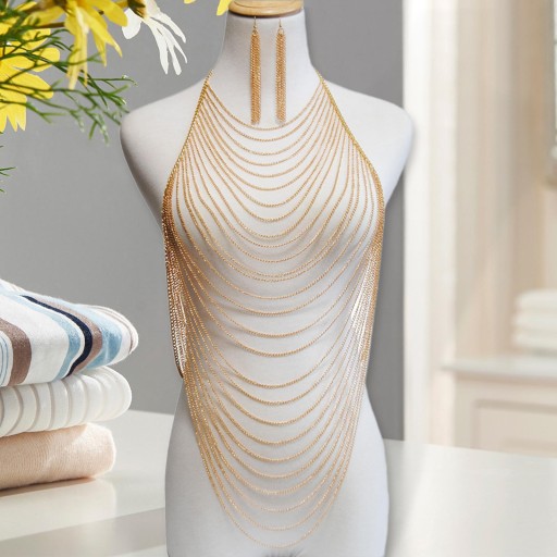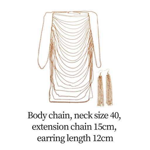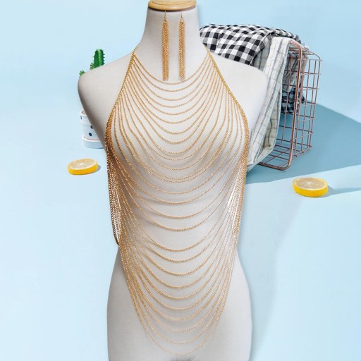 Damski łańcuszek bez rękawów, bez pleców, moda wielowarstwowa uprząż, łańcuszek na ciało, kolczyki z łańcuszkiem