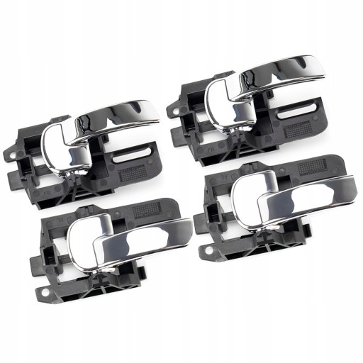 KLAMKA / klamki / RĄCZKA - NISSAN QASHQAI ( J10 ) rocznik 2007-2013 - LEWA PRAWA - 4 szt. KLAMKA / KLAMKI wewnętrzne do NISSAN QASHQAI z rocznika 2007 do 2013, produkt wykonany z wysokiej jakości materiału. Obudowa w kolorze czarnym, rączka plastikowa w kolorze srebrny chrom. ZESTAW ZAWIERA KOMPLET 4 KLAMEK - PRAWA ORAZ LEWA ( PRZÓD i TYŁ ) Komplet klamek wewnętrznych do drzwi przednich lub tylnych (są takie same).