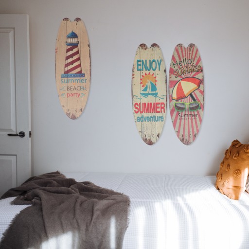 ✅Rustykalny znak plaży z deskami surfingowymi może wnieść do Twojego pokoju dobry smak letniej plaży.