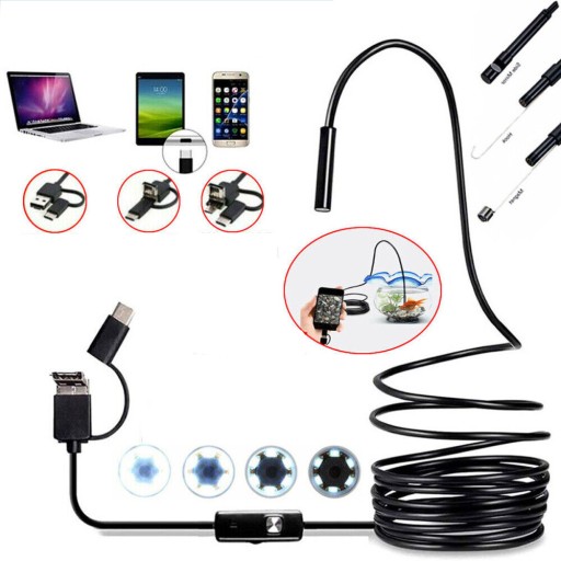 PROFESJONALNA ORYGINALNA KAMERA INSPEKCYJNA ENDOSKOP FHD Z PORTEM USB-C / MICRO USB / USB! - WERSJA PRO 10M