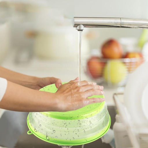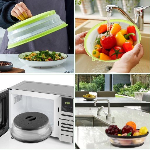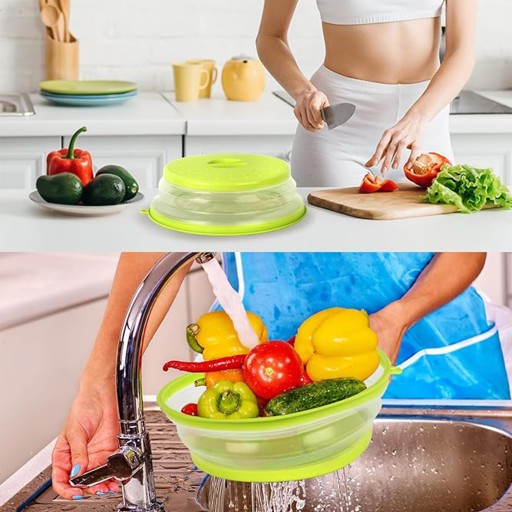 БЕЗОПАСНАЯ СИЛИКОНОВАЯ КОРЗИНА ДЛЯ МОЙКИ ОВОЩЕЙ, 2 ШТ., КРЫШКА ДЛЯ МИКРОВОЛНОВОЙ ПЕЧИ