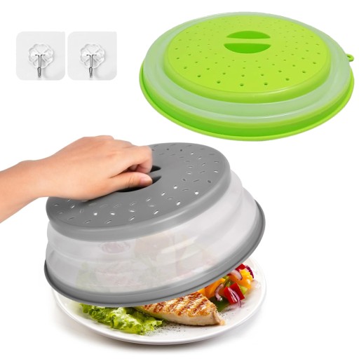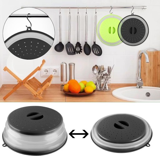 Można ją rozłożyć, gdy jest używana i złożyć, gdy nie jest używana. W naszym produkcie znajdują się również dwa samoprzylepne haczyki, które można wykorzystać do zawieszenia osłony kuchenki mikrofalowej na ścianie, która nie zajmuje miejsca i jest łatwa do przechowywania.