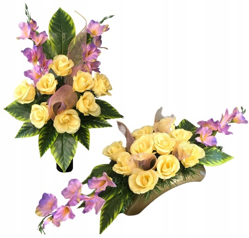 STROIK NAGROBNY ZE SZTUCZNYCH KWIATÓW + BUKIET DO WAZONU 2w1