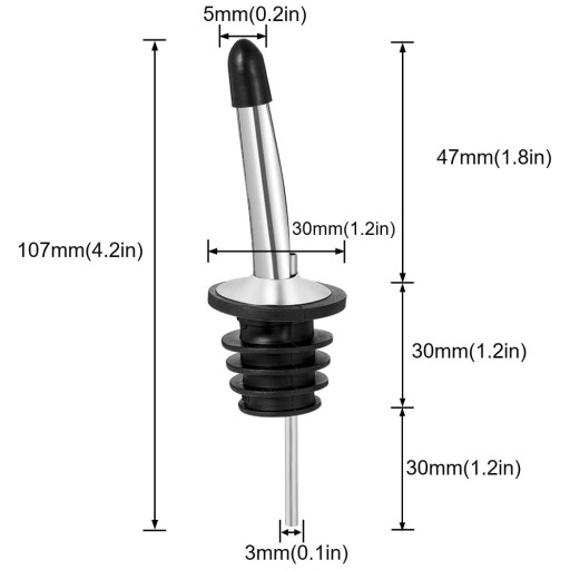 - - Stożkowy strumień o szczelnej konstrukcji, może kontrolować przepływ wina, zmniejszać przelewanie. Dzięki wyrzutnikowi ze stali nierdzewnej możesz łatwo wlać wino do miarki i uniknąć przelania odpadów podczas nalewania z szyjki butelki do miarki.