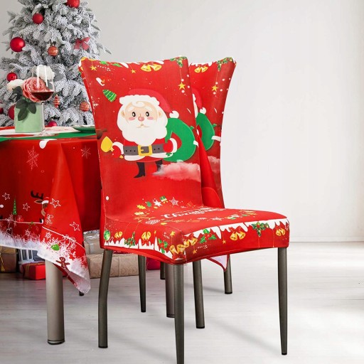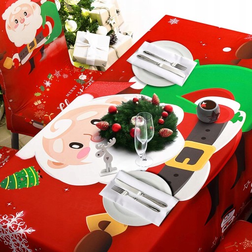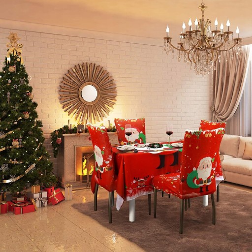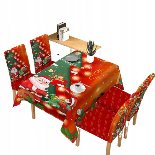 4szt. Pokrowce na krzesła świąteczne do jadalni i 1 szt. Świąteczny obrus, przeznaczony na Boże Narodzenie.
