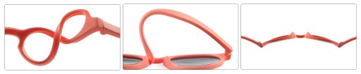 Okulary wykonane z bardzo przyjaznego matowego tworzywa. Nie uciskają głowy dziecka. Dzięki swojej plastyczności są bardzo wytrzymałe a zarazem lekkie. Waga okularów to zaledwie 21g.