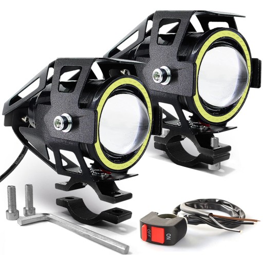 Motocyklowe światła przeciwmgielne LED U7 Reflektory do jazdy dziennej z białym pierścieniem Halo Angel Eyes i przełącznikiem 2 zestawy