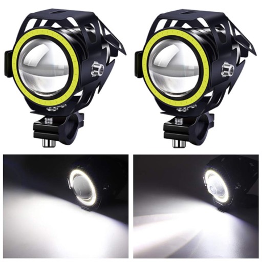 Halogeny motocyklowe U7 reflektory stroboskop biały pierścieniem ANGEL EYES