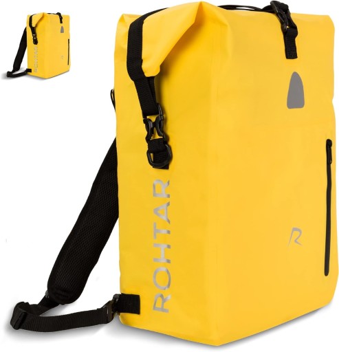 Wodoodporna torba rowerowa Rohtar - 18L | Plecak, sakwa z regulowanymi paskami, zaciskami na kierownicę i ukrytymi zamkami | Torba na bagażnik rowerowy 3 w 1, plecak, bagażnik rowerowy | Żółty.